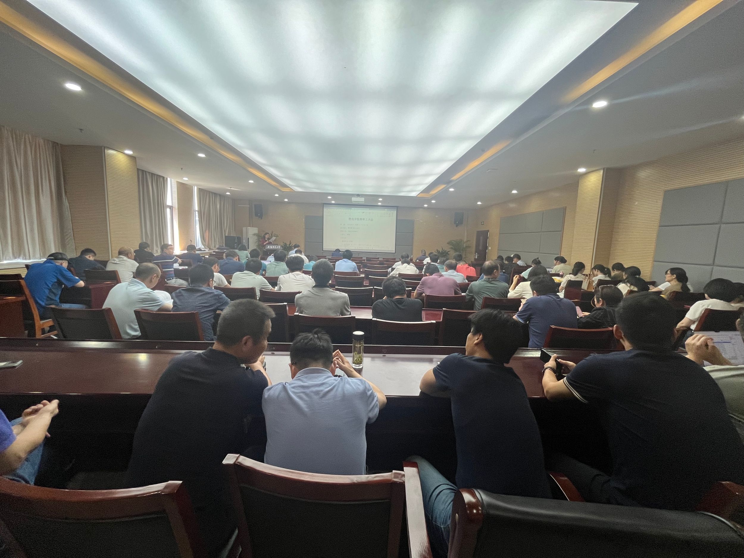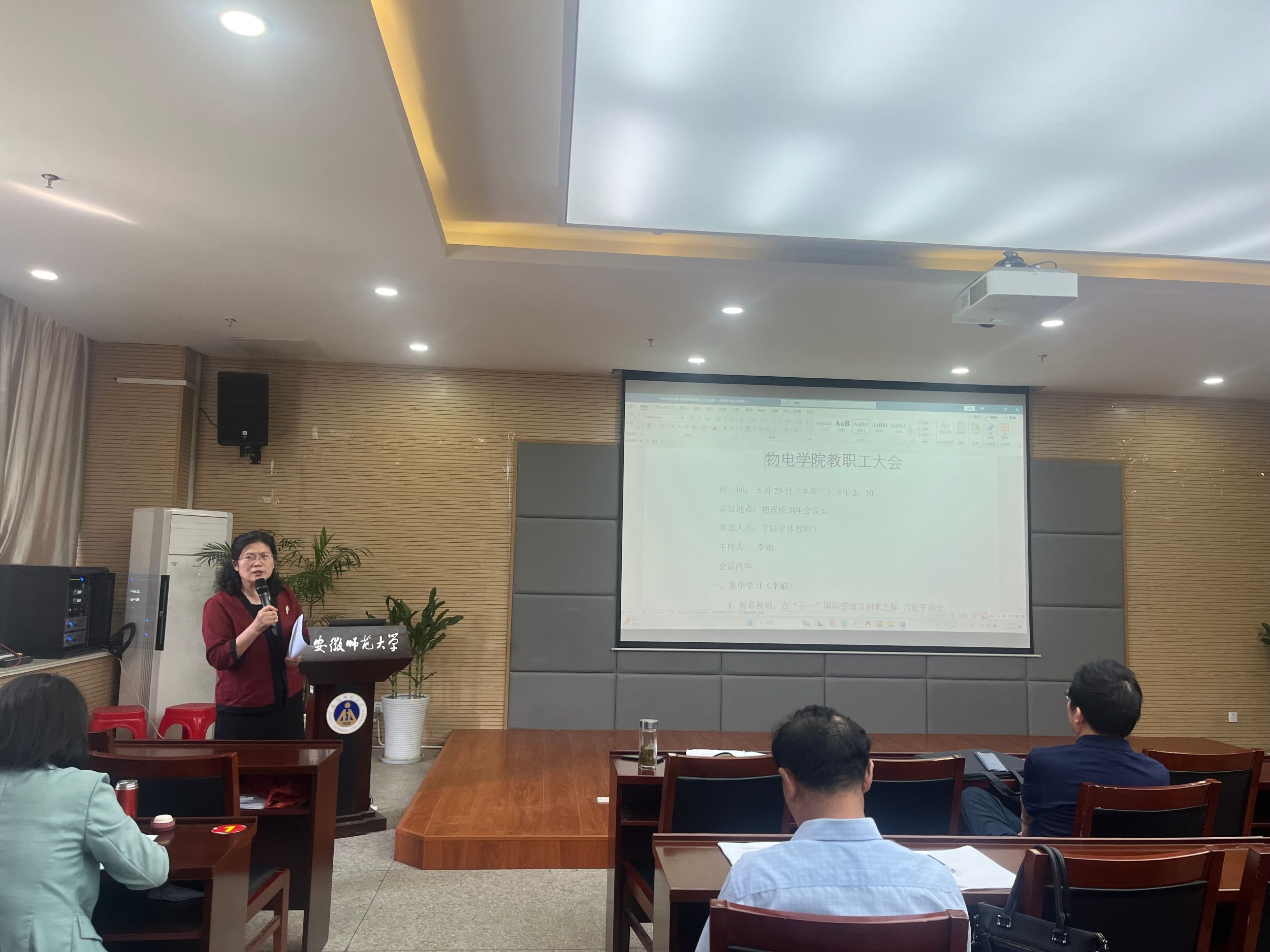 在物理楼304会议室召开全体教职工大会,传达学习习近平总书记重要讲话精神,布置近期重点工作,通报学院巡察整改情况。学院全体教职工参加会议。学院党委书记李娟主持会议。