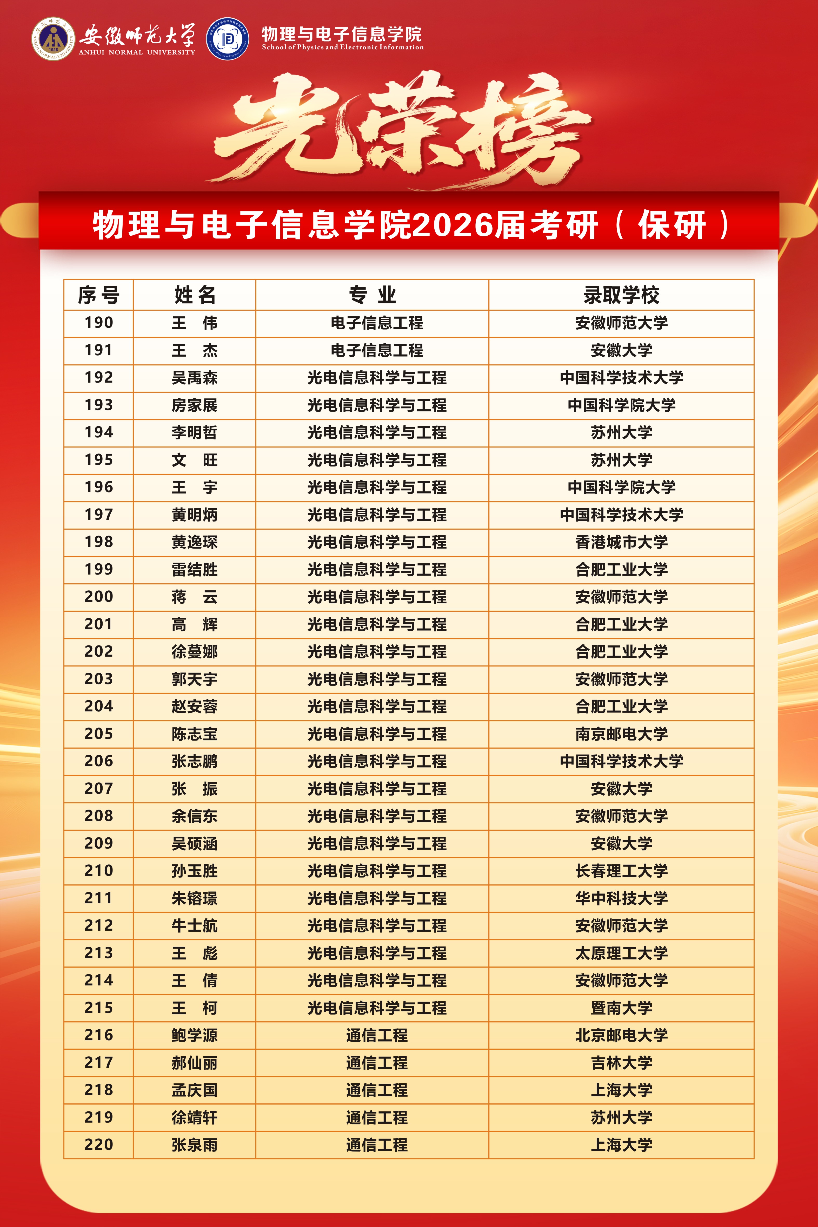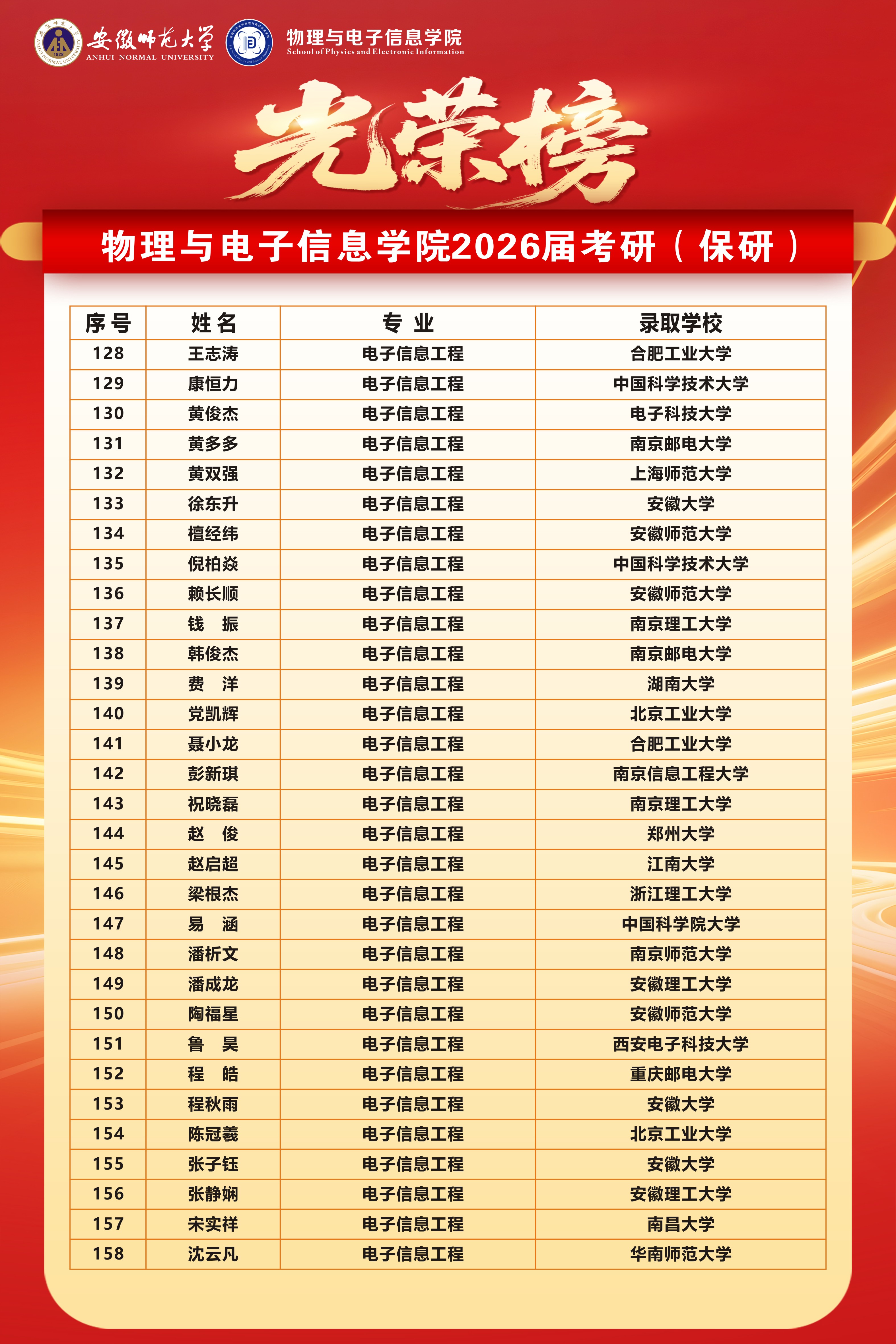 二、两个国家级一流专业升学率再创新高:物理学(师范)专业达55.8%,电子信息工程专业高达70.3%,均为学院历届最高。