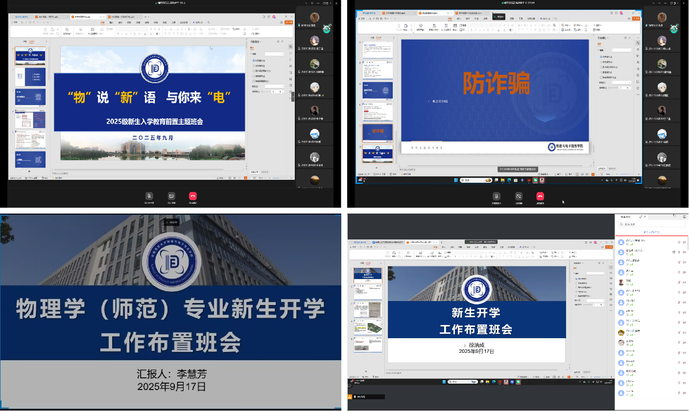 为助力新生平稳入学,学院辅导员依托新媒体平台前后举办两场前置线上班会,围绕专业认知、班级建设、防诈骗等方向展开云端交流。通过案例分析、互动答疑引导新生树立正确大学观,勉励学子勤学奋斗、不负青春。针对报到流程、安全防护等焦点问题,辅导员详细解答并强化防诈意识,为新生筑牢安全防线,扎实上好入学教育“第一课”。