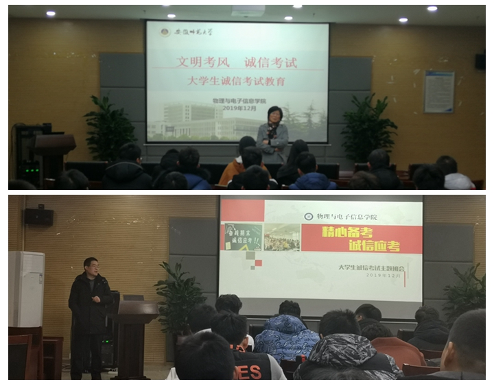 齐抓共管重引导。学院近两年来坚持每学期末全体领导班子成员分专业进各年级各专业开展诚信考试教育班会,学院领导以各高校严抓考风考纪作法以及学校近年来对于学生作弊行为的处理结果为案例,帮助学生充分认识到诚信考试的重要意义和作弊行为的严重后果,引导广大同学积极备考,认真复习,以充分的准备应对期末考试。