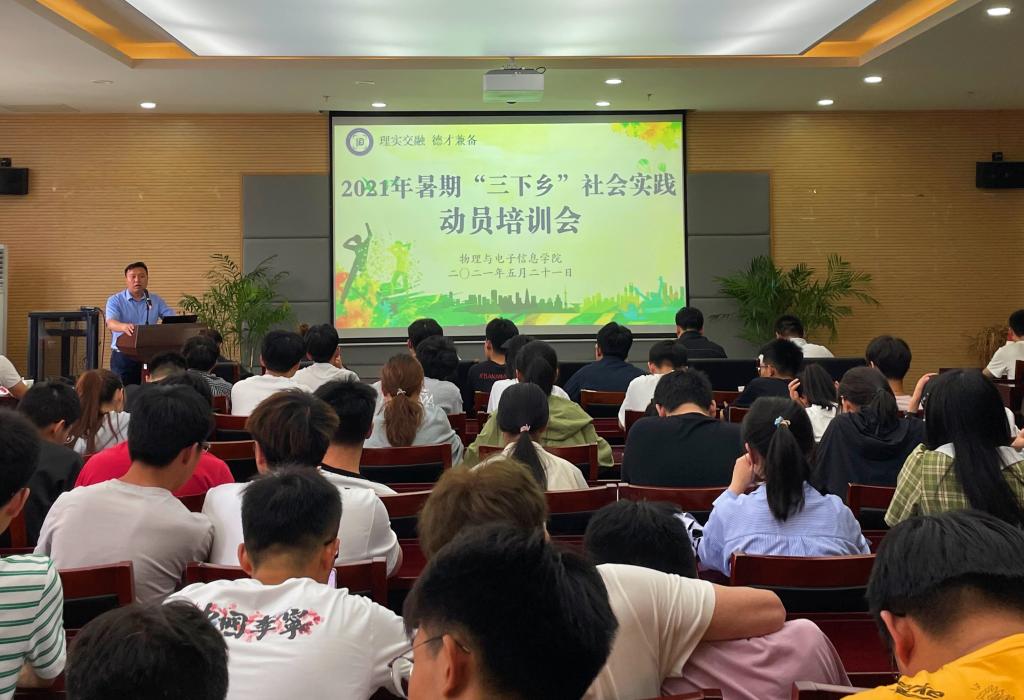 在物理楼304报告厅召开2021年暑期“三下乡”社会实践动员培训会。学院党委副书记黄友生,学院全体专兼职辅导员,院团委、学生会、各社团学生代表以及2019级、2020级学生代表参加会议。会议由学院团委学生副书记李浩主持。