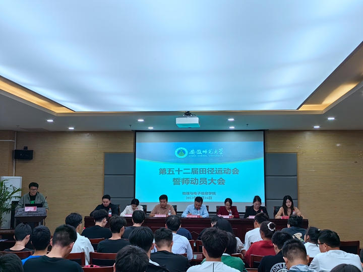 在物理楼304报告厅召开校第52届田径运动会誓师动员大会。学院党委副书记黄友生、团委书记张津源,全体本科生专兼职辅导员出席会议,运动员、学生会工作人员参加会议。会议由辅导员邹孝龙主持。