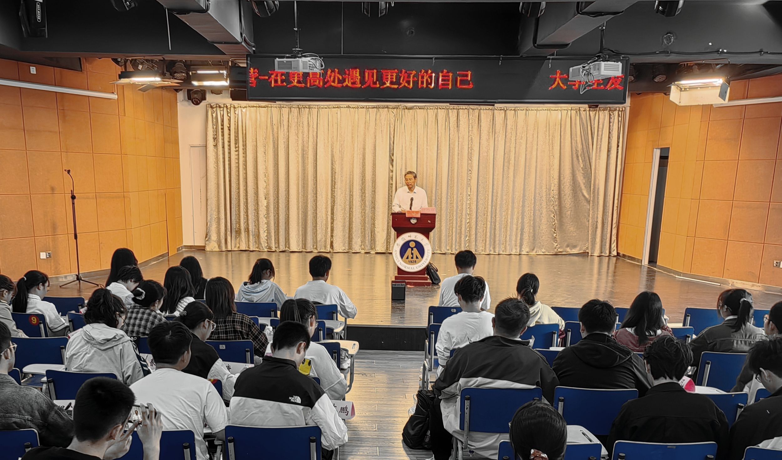 路丙辉以“什么叫做更高处”为切入点,以文学典故与自身经历为“线索”,围绕更高处的思想认知、道德情操、行为能力,从“内卷”谈到“躺平”,从个人层面上升至国家政策。他谈到,大学生若想避免“卷又卷不赢,躺又躺不平”的尴尬处境,需要把握自己的节奏,培养正确的三观。他指出,“更好的自己”需要实事求是,不断砥砺认知力;需要勤于实践,不断增强执行力;需要立志高远,不断提升原动力。“蚓无爪牙之利,筋骨之强,上食埃土,下饮黄泉,用心一也”“龟兔赛跑,贵在坚持”……他鼓励同学们要不断攀登直至遇到更好的、最好的自己。
