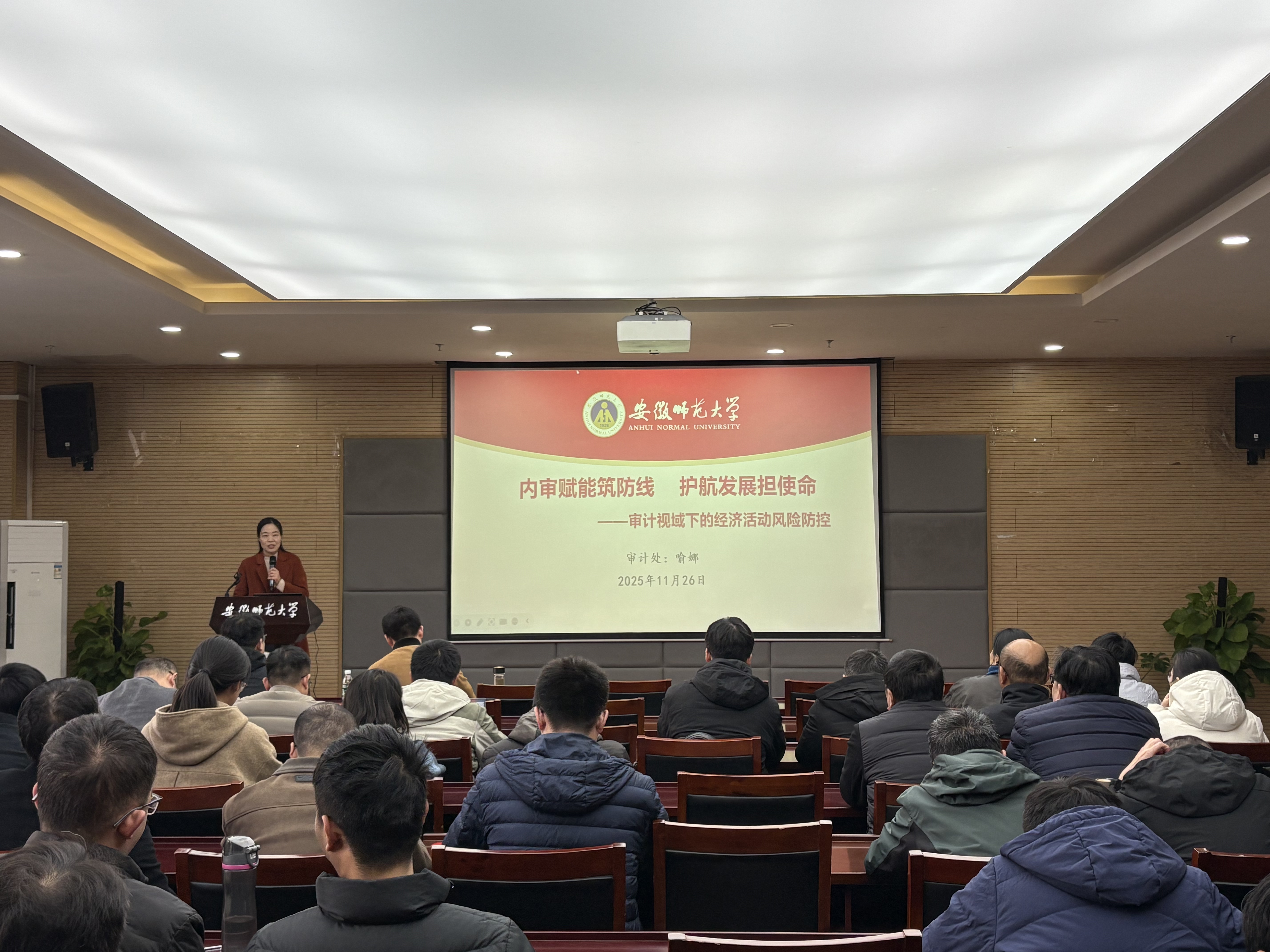 会上,喻娜作了题为《内审赋能筑防线 护航发展担使命---审计视域下的经济活动风险防控》专题辅导报告。喻娜从深刻认识审计工作的重要意义、学校审计工作开展情况和审计中易发频发问题等三个部分系统介绍了审计政策制度、审计的主要范围和关注点、审计中发现的一些有代表性的问题等,特别是结合大量鲜活的案例给老师们讲解了在科研经费使用和实验设备采购中易存在的风险隐患和经济陷阱。喻娜强调,内部审计是体检,是为了治已病、防未病,全体教职工要认真学习相关政策法规和要求,增强程序意识、规矩意识和风险意识,正确对待并自觉接受监督,做政治上的明白人、工作上的老实人和生活中的干净人。